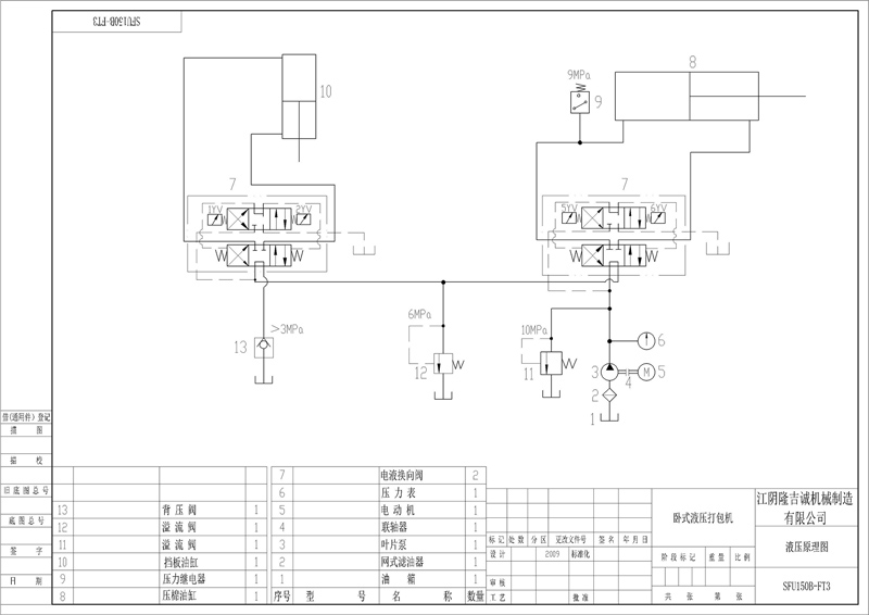 3.7.3 壓力繼電器:本機(jī)裝1只壓力繼電器,調(diào)至13Mpa,用控制壓棉油缸棉包成形。