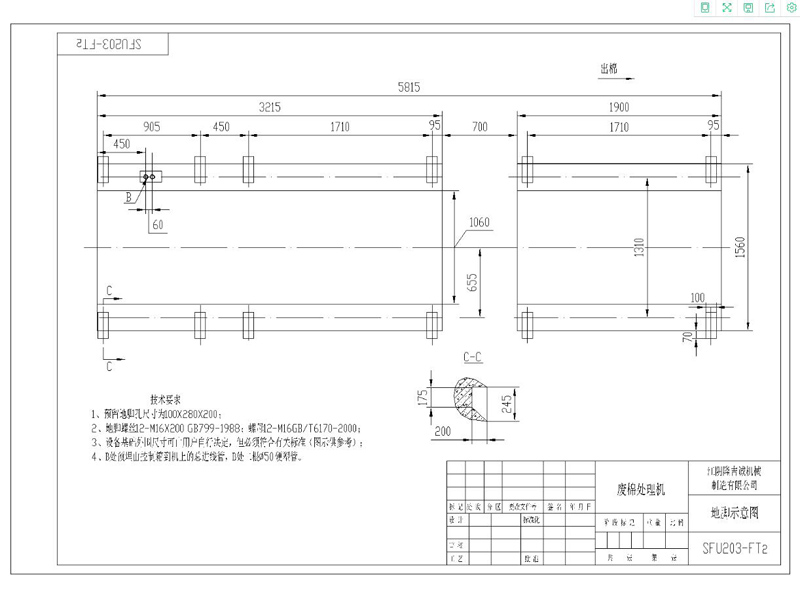 為確保廢棉處理機(jī)環(huán)境及正常開車運(yùn)轉(zhuǎn),與本機(jī)配套使用的濾塵需符合流程的排列及工藝要求選型濾塵機(jī)組。