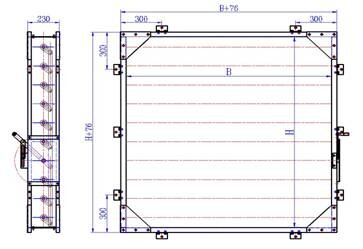 LF model adjusting window is designed to control capacity of new air, return air and exhaust air in air conditioning system. Blade of adjusting window is made of high quality aluminum alloy material. And its rotation is realized by draw lever system. The adjusting window is featured by simple structure, stable construction, flexible in adjustment, low air leakage, smooth air flow, glossy blade, acid and corrosion proof etc. Manual adjusting hand shank is installed at the side of the window, which can be replaced by electricity or air-powered maneuvering valve. Blade rotating direction is clockwise.