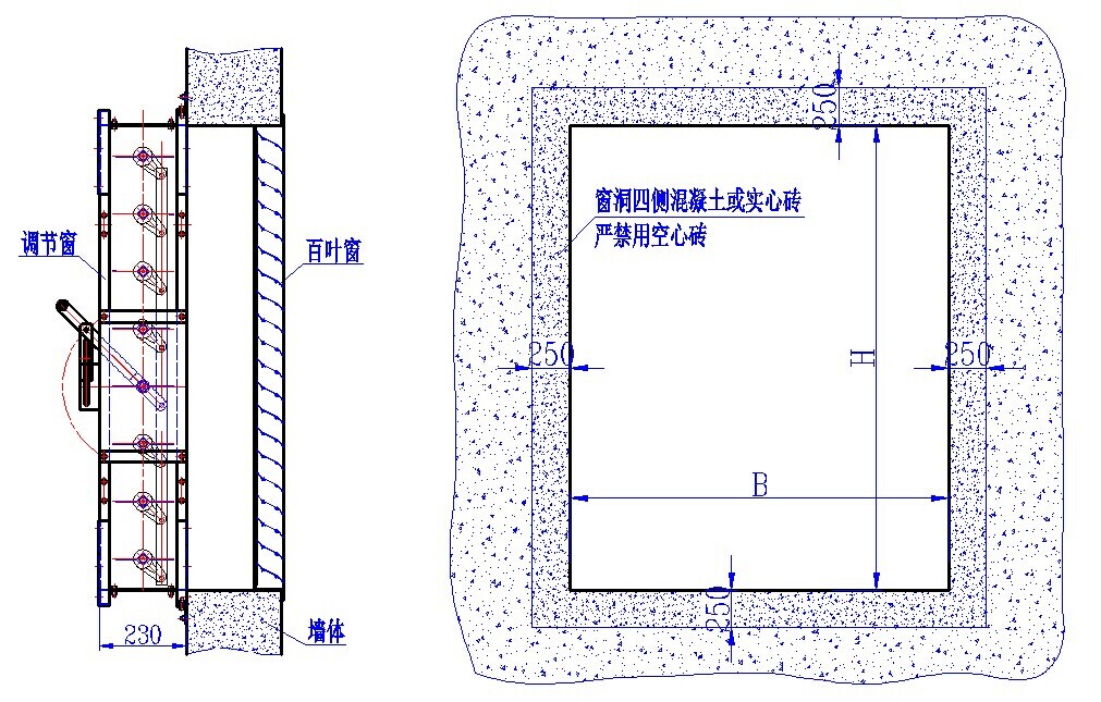 調(diào)節(jié)窗/百葉窗土建預(yù)留窗洞及安裝簡(jiǎn)圖