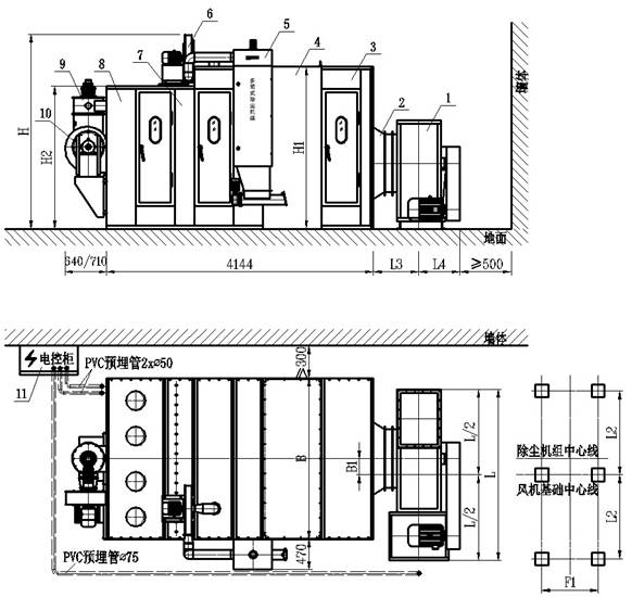 3、 機(jī)組不含外接管道、主風(fēng)機(jī)(包括對(duì)應(yīng)的控制部分)。根據(jù)濾塵系統(tǒng)的設(shè)計(jì)要求,須另行訂購。