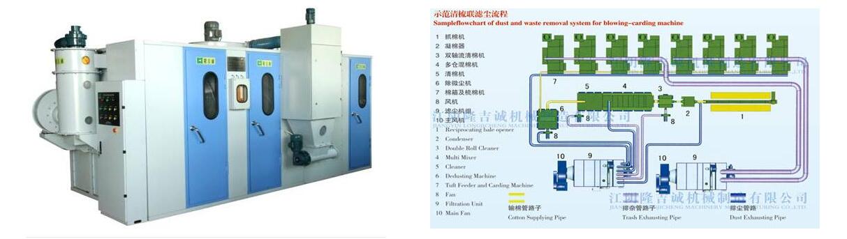 This system is mainly used for dust filtering system in textile industry such as cotton, flax, wool, chemical fiber etc, filters and collects fibers, thick and tiny impurities in the air flow goes through this system, to clean and purify the air.