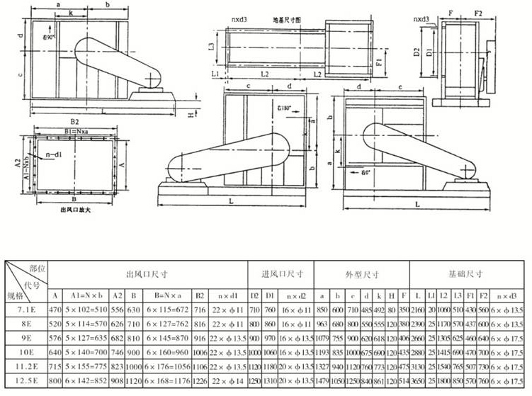 十三、SFF232-11型離心風(fēng)機(jī)外形尺寸圖 SFF232-11 Outer dimensions of Centrifugal Fan